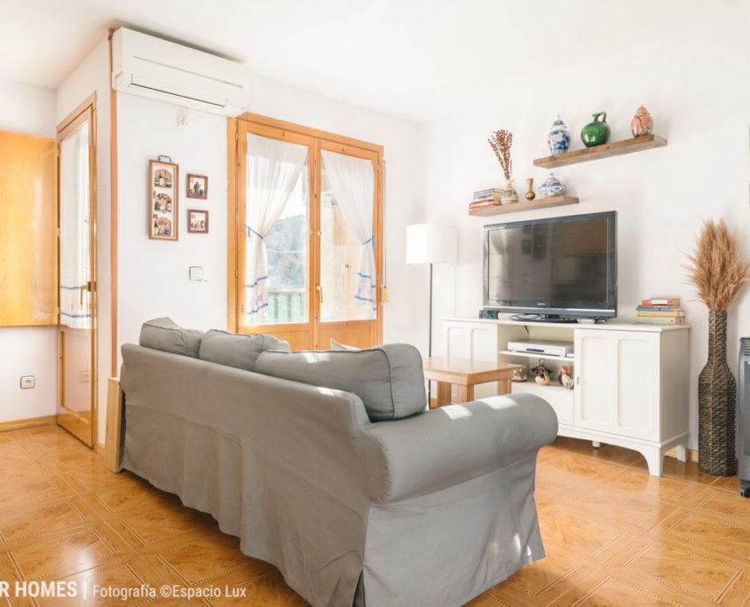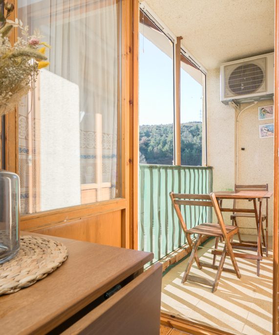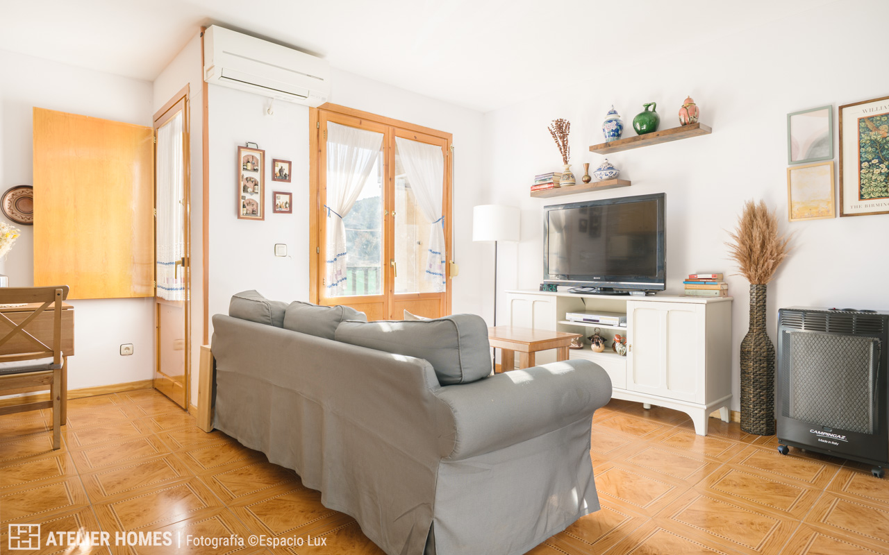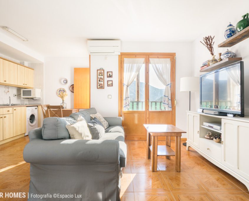 Ubicada en una cuidada urbanización, esta propiedad ofrece un entorno natural privilegiado y unas vistas despejadas hacia las montañas desde sus dos balcones, lo que convierte cada estancia en un lugar ideal para el descanso y la desconexión.