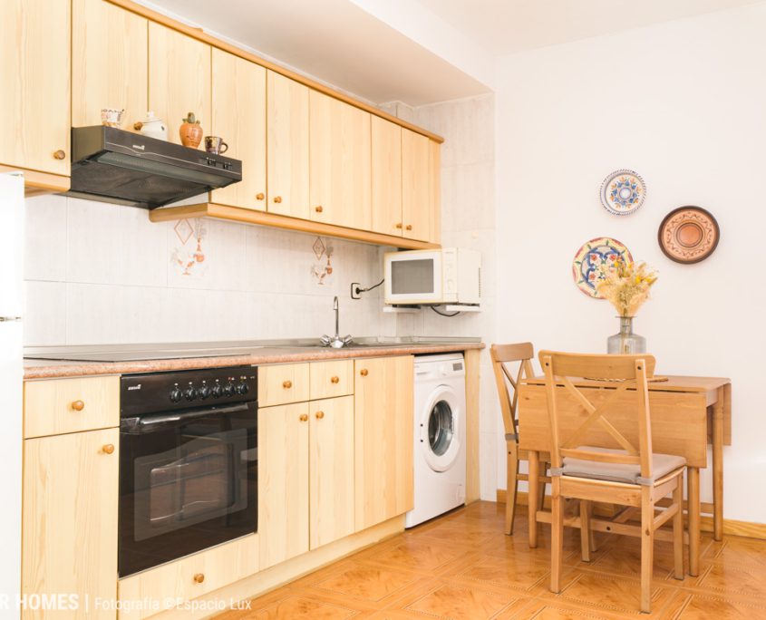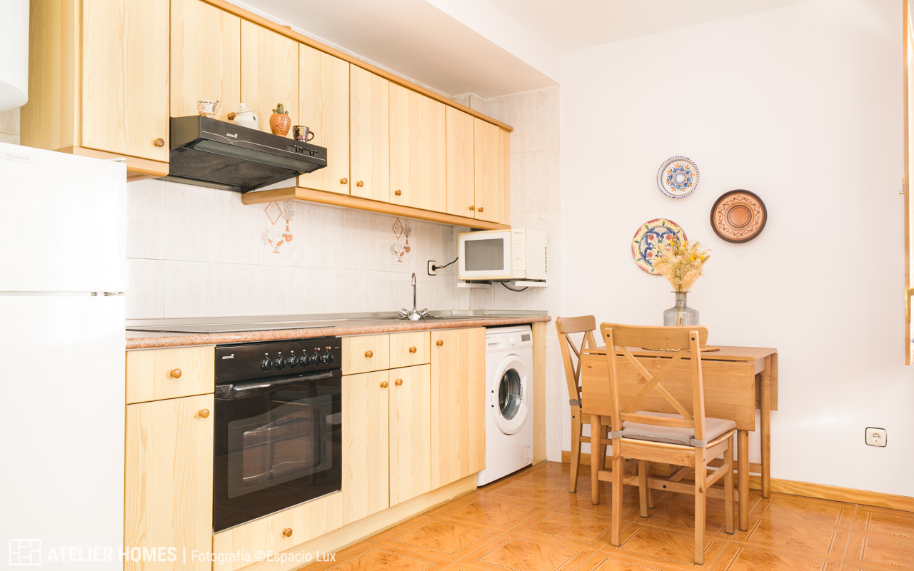 La vivienda cuenta con 61m² construidos y se distribuye en un amplio y cálido salón-comedor con chimenea de leña, un espacio que invita a disfrutar del invierno en la montaña, acompañado además de aire acondicionado con bomba de frío y calor para un confort total durante todo el año. La cocina, abierta y funcional, está completamente equipada y se integra perfectamente en la zona de día.