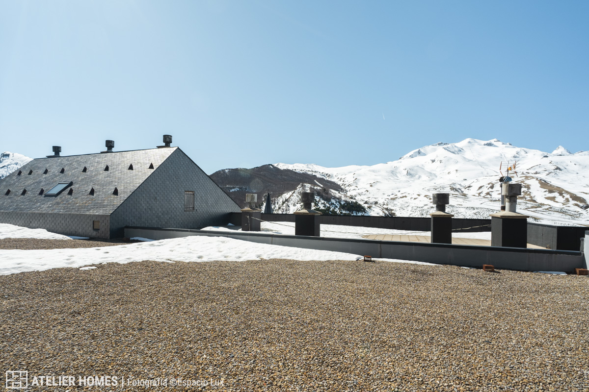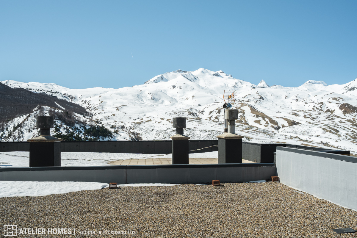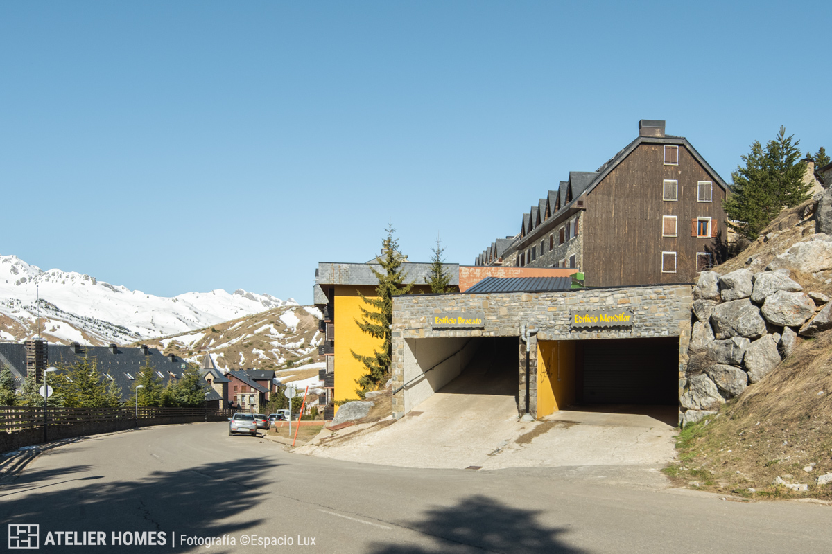 ATELIER HOMES presenta esta cuidada vivienda en la urbanización de Formigal, en el Edificio Brazato, con una de las orientaciones más demandadas: sur, lo que garantiza una excelente entrada de luz natural durante todo el día y espectaculares vistas abiertas hacia el entorno de la estación de esquí de Formigal.