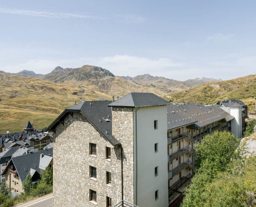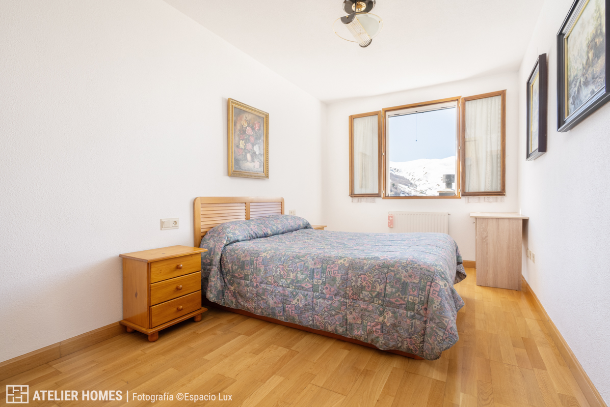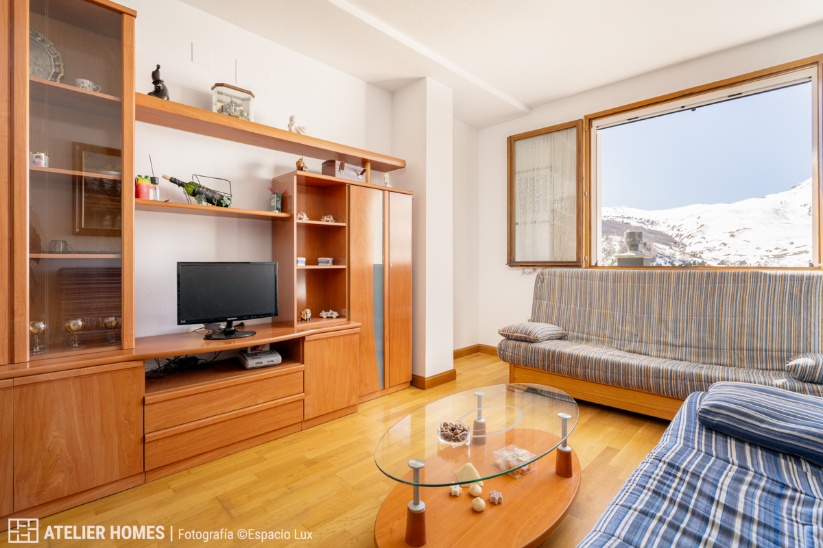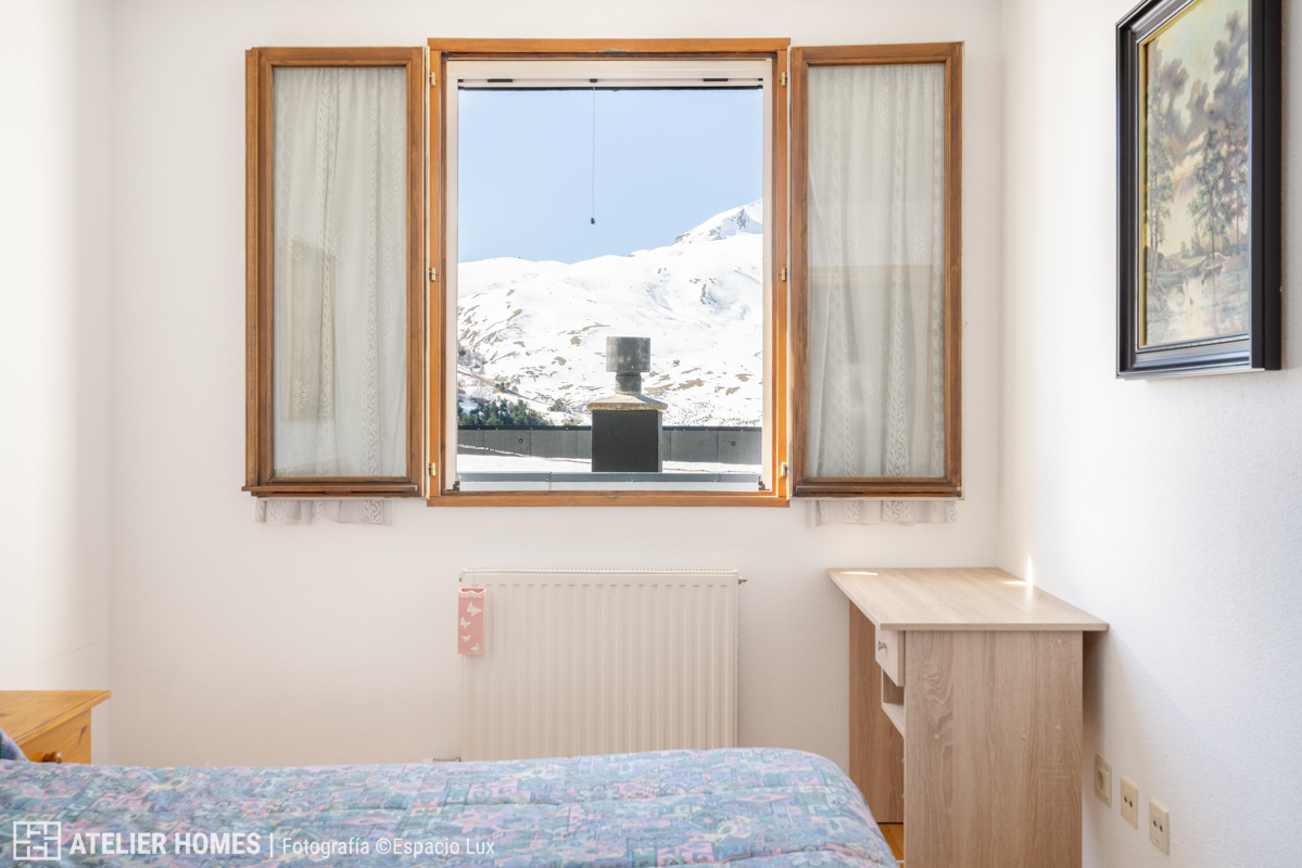 ATELIER HOMES presenta esta cuidada vivienda en la urbanización de Formigal, en el Edificio Brazato, con una de las orientaciones más demandadas: sur, lo que garantiza una excelente entrada de luz natural durante todo el día y espectaculares vistas abiertas hacia el entorno de la estación de esquí de Formigal.