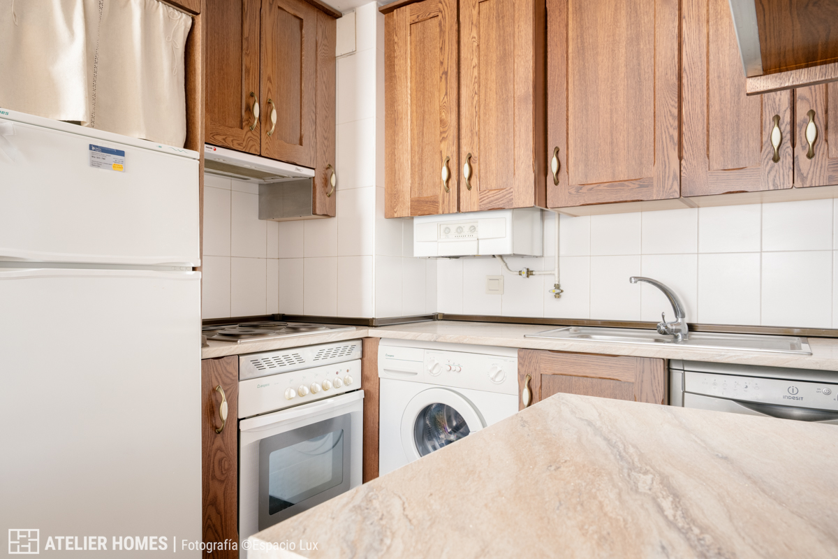 El dormitorio, de buenas proporciones, dispone de armario empotrado, aportando orden y capacidad de almacenaje, mientras que el baño, actualizado con ducha, presenta un diseño práctico y actual.