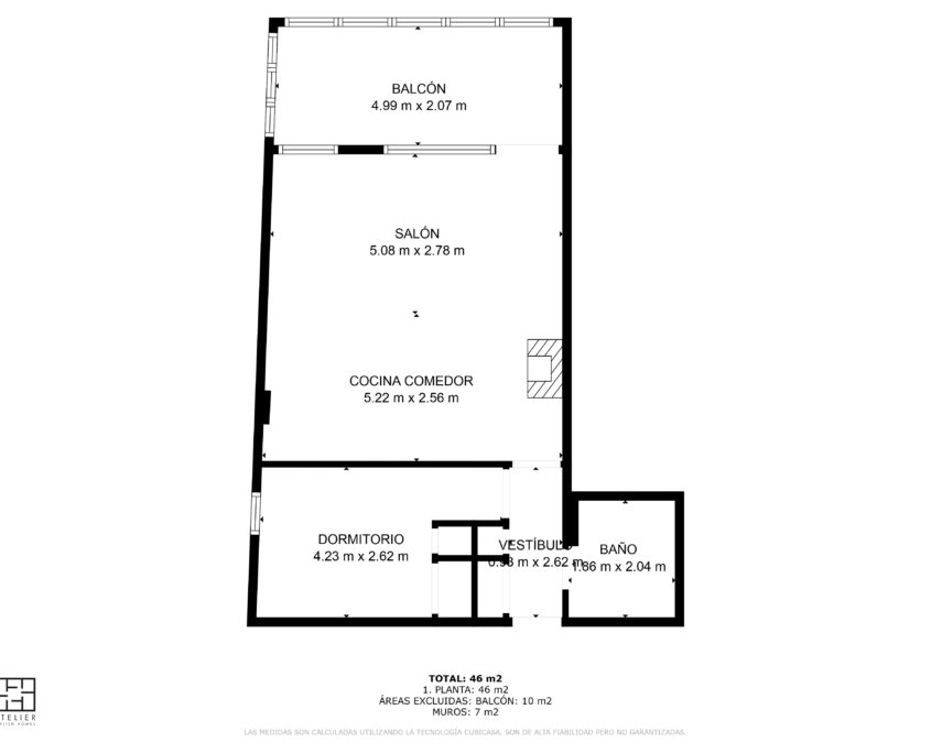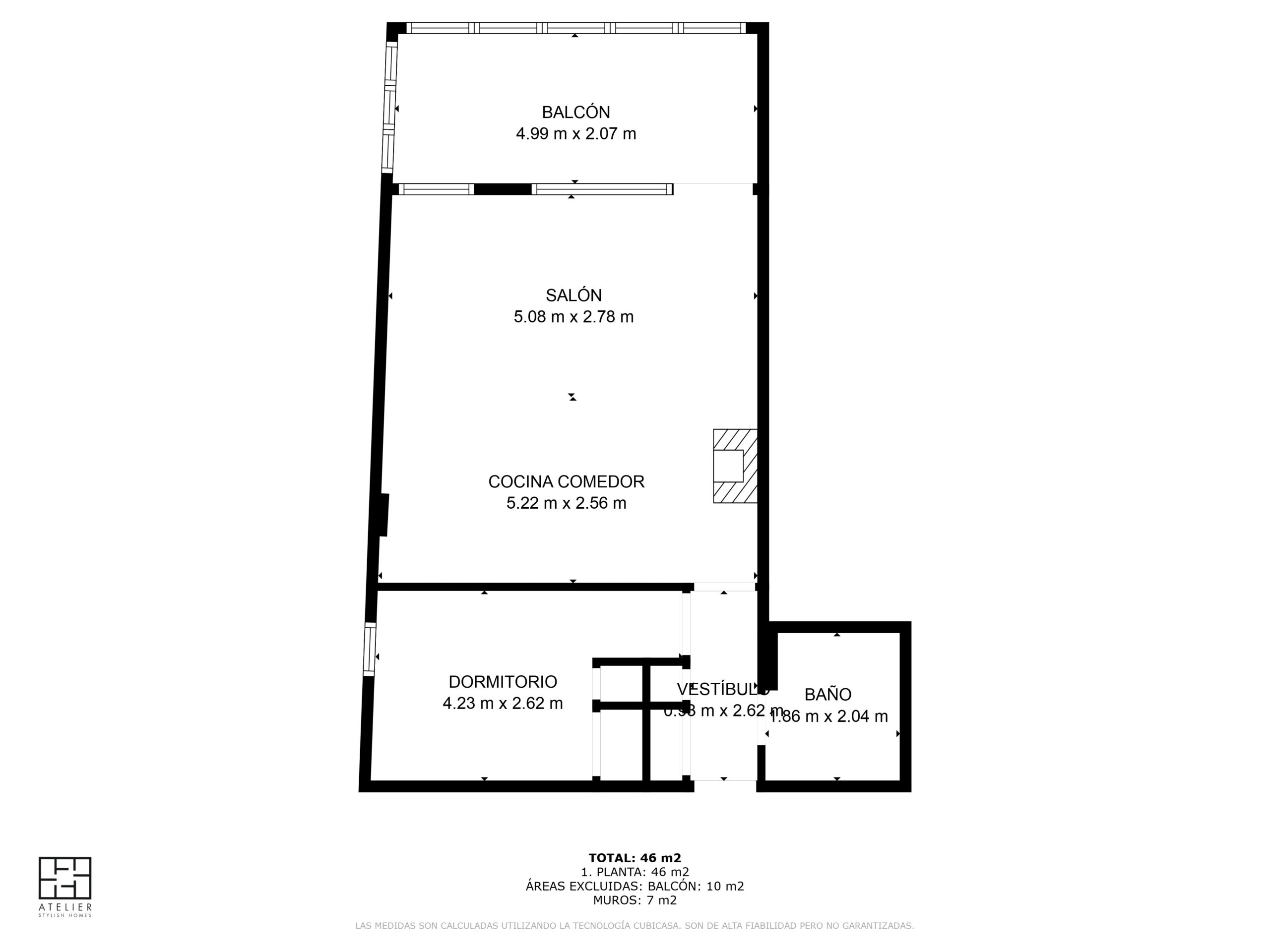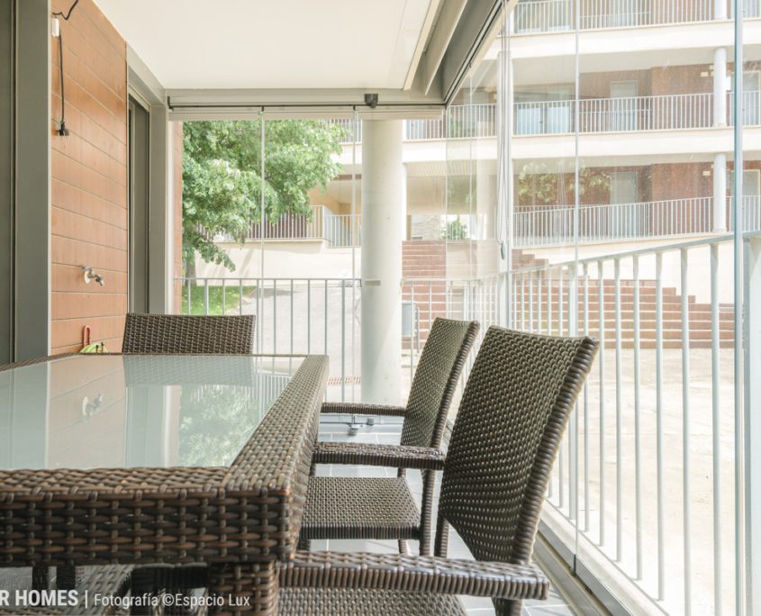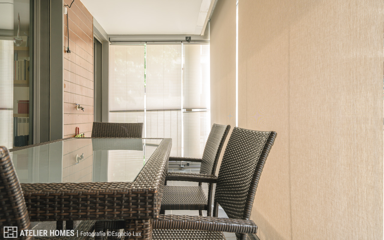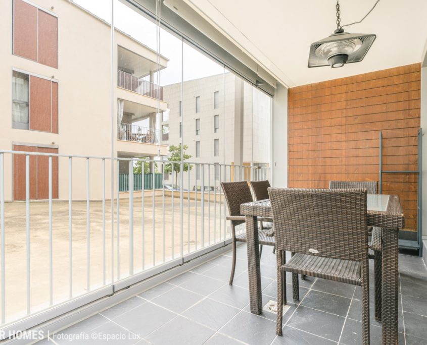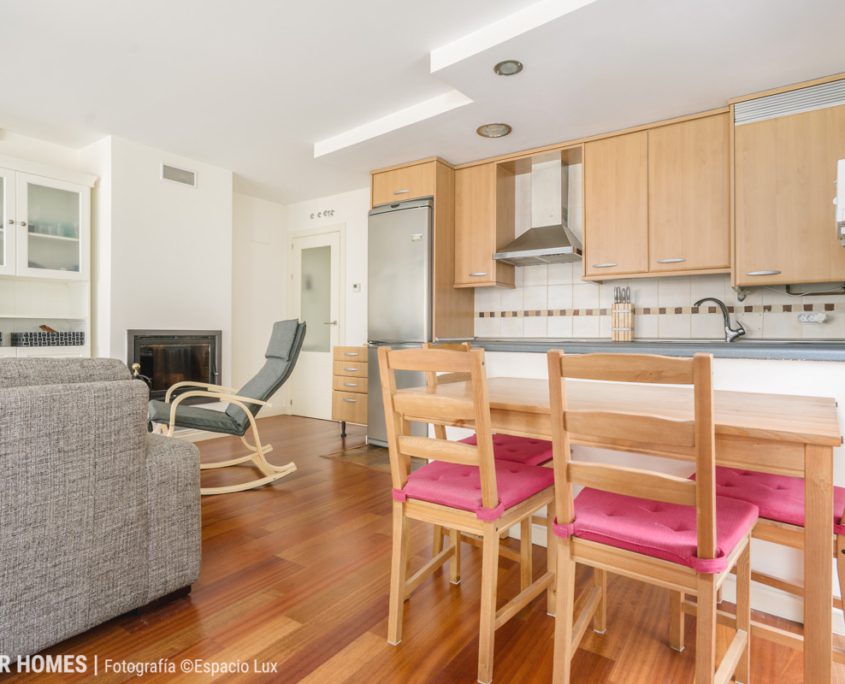 La vivienda está distribuida de forma muy funcional e inteligente, dispone de un luminoso salón-comedor con cocina integrada y chimenea de leña, un baño completo y un dormitorio doble con armario empotrado. Desde el salón se accede a una amplia terraza equipada con grandes ventanales correderos que permiten abrir o cerrar el espacio según la estación, convirtiéndolo en un lugar perfecto tanto para el verano como para el invierno.