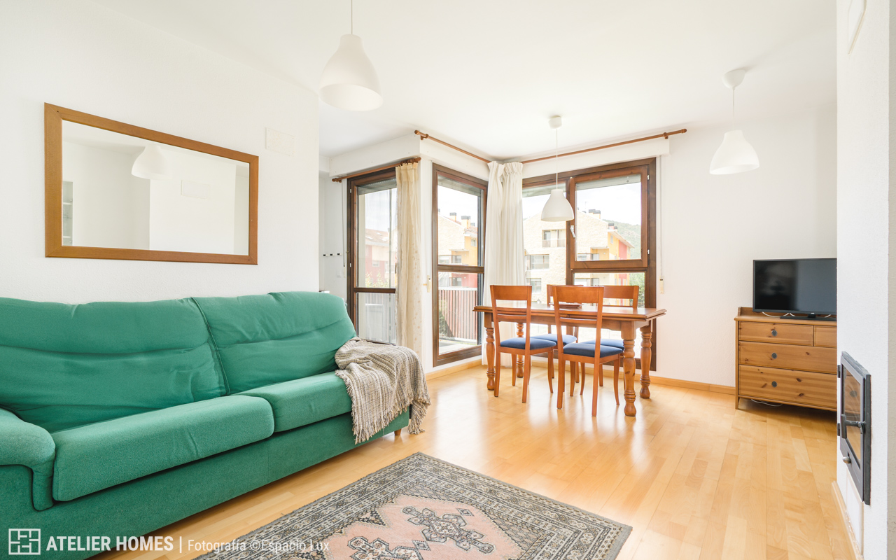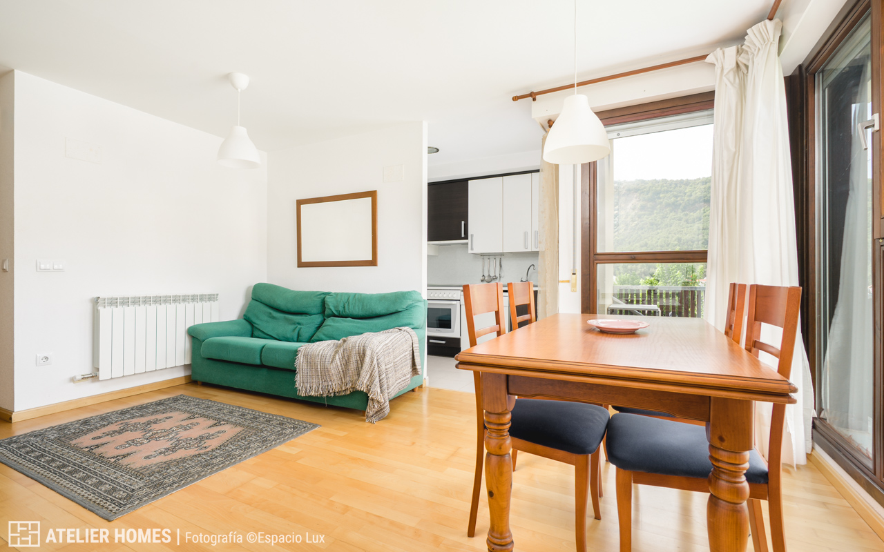 ATELIER HOMES presenta este acogedor apartamento en Puente la Reina de Jaca, ideal tanto como vivienda habitual, segunda residencia o inversión en el Pirineo.