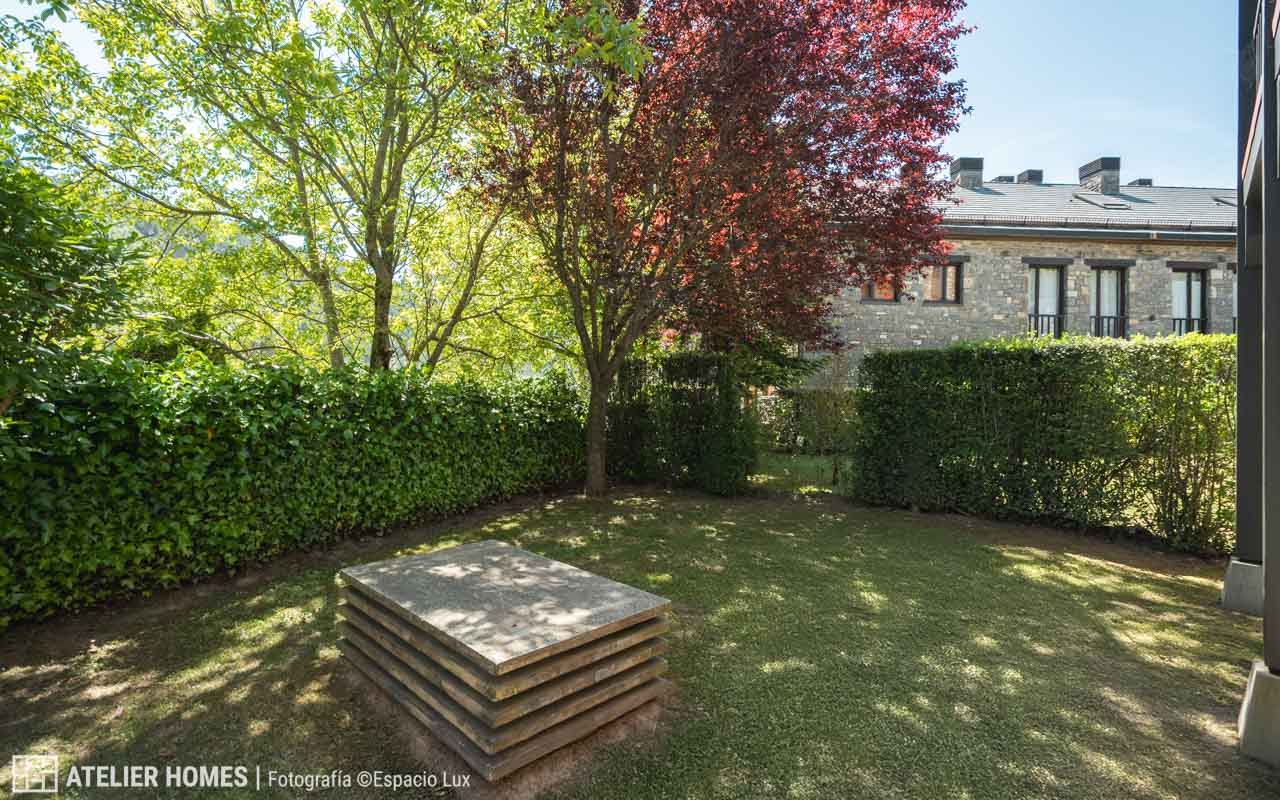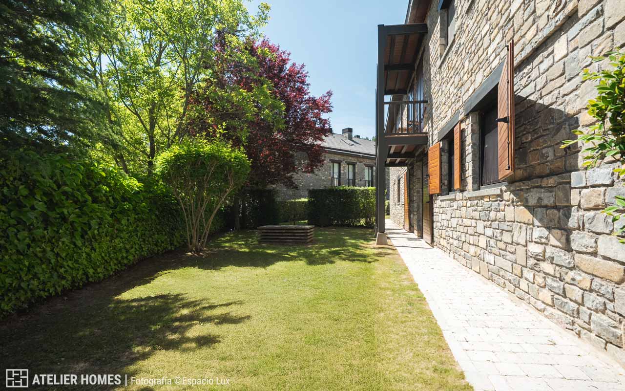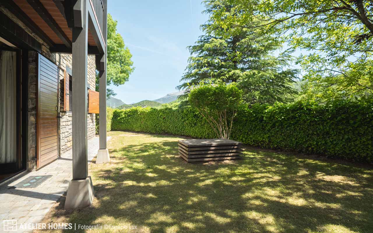 ATELIER HOMES presenta este acogedor y luminoso bajo con jardín privado, situado en la prestigiosa urbanización Luga de Castiello, en Castiello de Jaca, a pocos minutos de las estaciones de esquí de Astún y Candanchú y de la ciudad de Jaca.