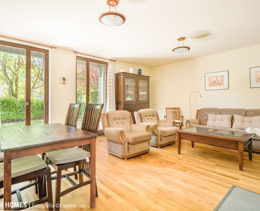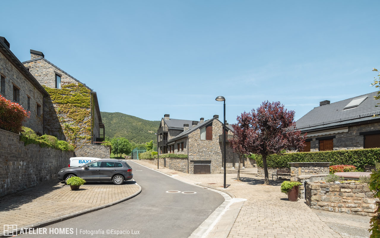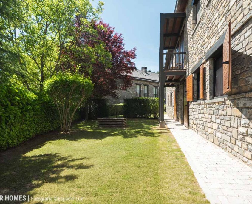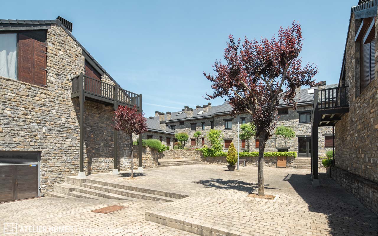 ATELIER HOMES presenta este acogedor y luminoso bajo con jardín privado, situado en la prestigiosa urbanización Luga de Castiello, en Castiello de Jaca, a pocos minutos de las estaciones de esquí de Astún y Candanchú y de la ciudad de Jaca.