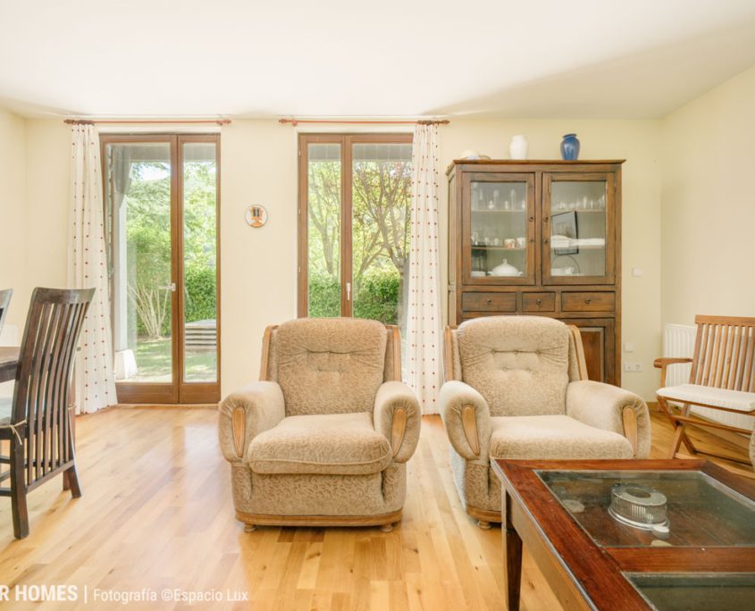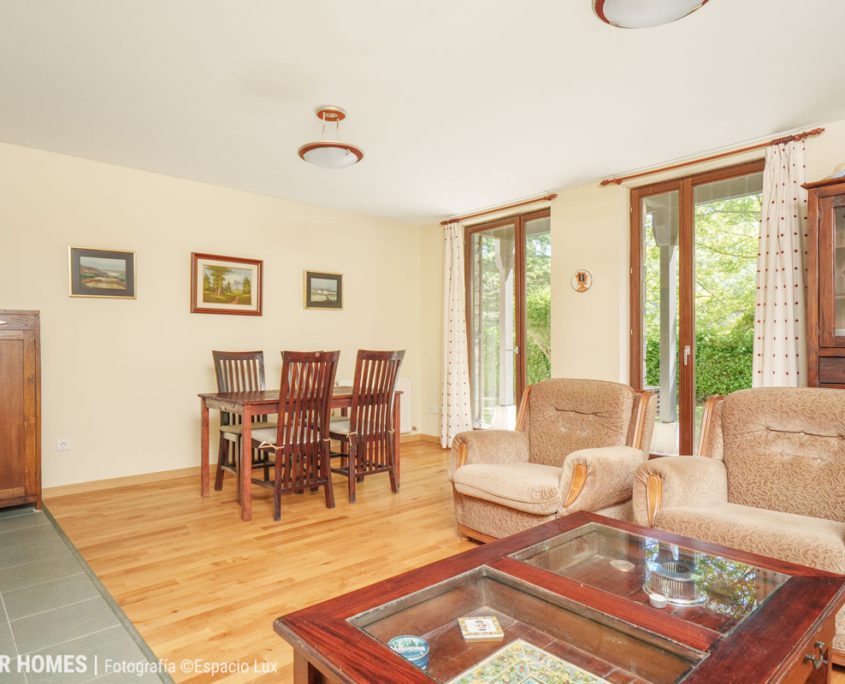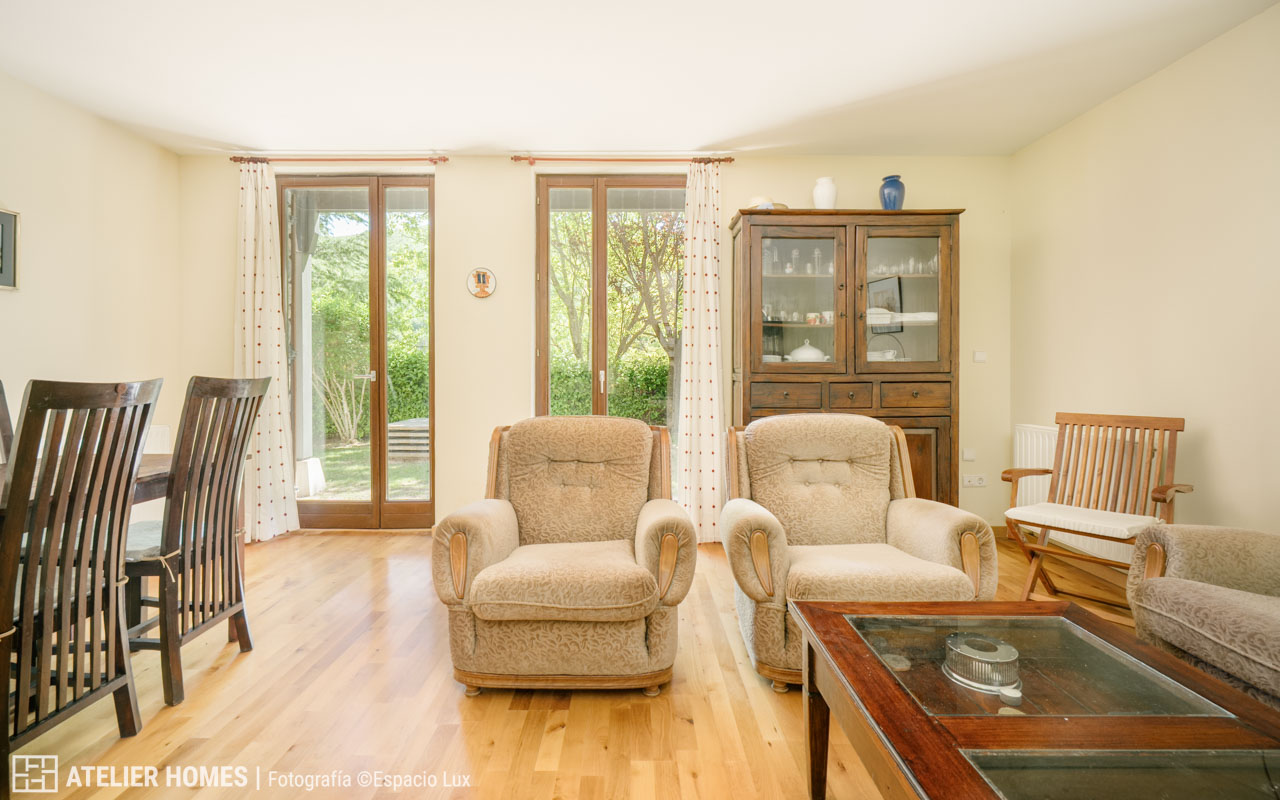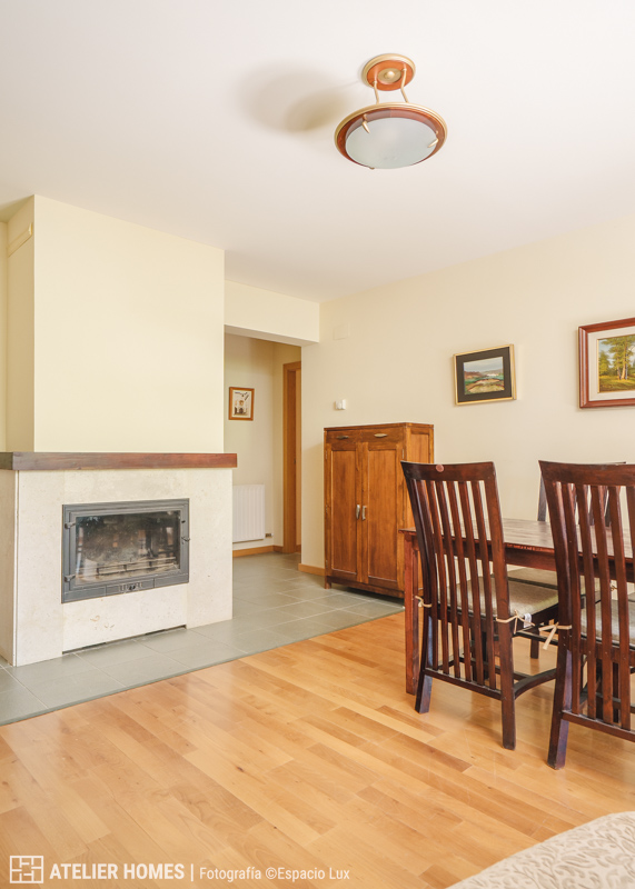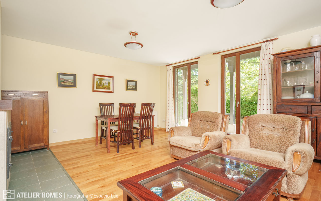 El área de día se compone de un salón-comedor de generosas dimensiones, que se convierte en el auténtico corazón de la vivienda. Su amplitud lo hace perfecto para reuniones familiares, momentos de relax junto a la chimenea y para disfrutar de la luz natural gracias a sus grandes ventanales, que además conectan con el jardín. La cocina es independiente, está completamente equipada y pensada para ofrecer funcionalidad en el día a día.
