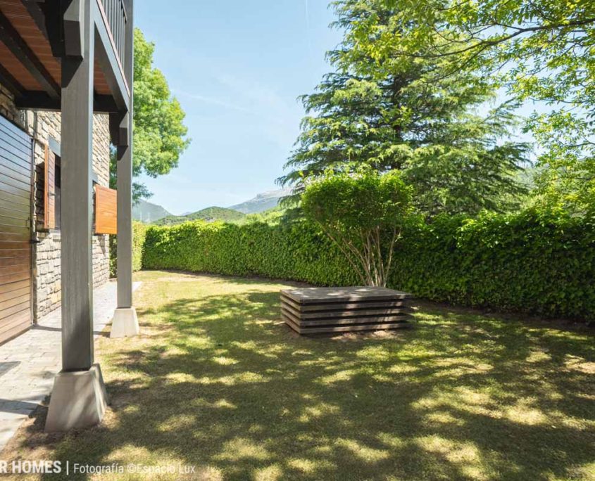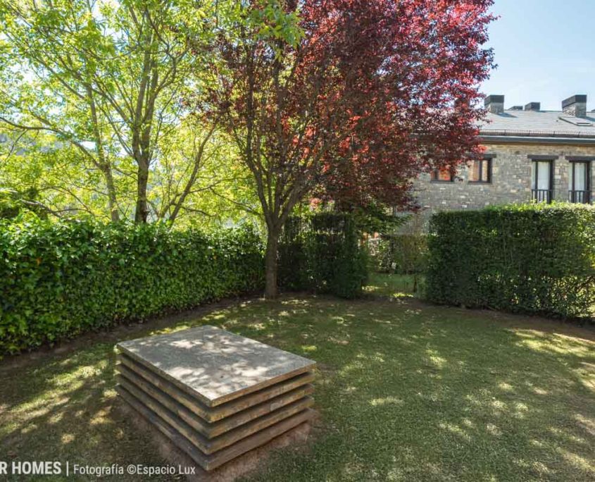 La propiedad incluye un jardín privado de aproximadamente 83 m², ideal para disfrutar del aire libre, comer al sol o relajarse con tranquilidad. Desde este espacio exterior se disfrutan unas espectaculares vistas al monte Collarada, lo que aporta un valor añadido único a la vivienda.