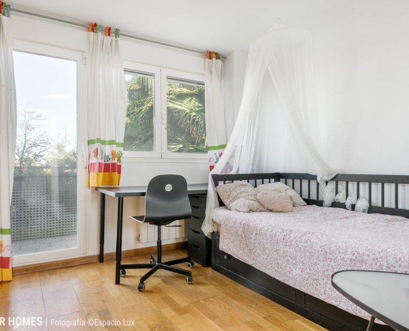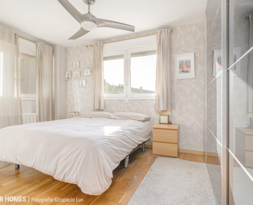 En las plantas superiores se encuentran tres dormitorios dobles, todos con grandes ventanales, además de tres baños completos y un aseo de cortesía. La suite principal destaca por su amplitud y luz natural, ofreciendo un espacio íntimo y relajante.