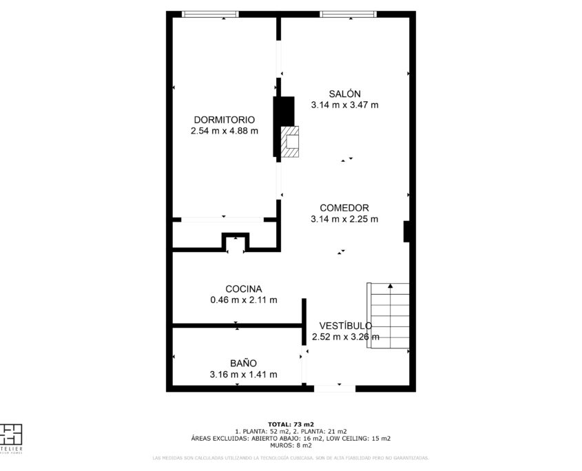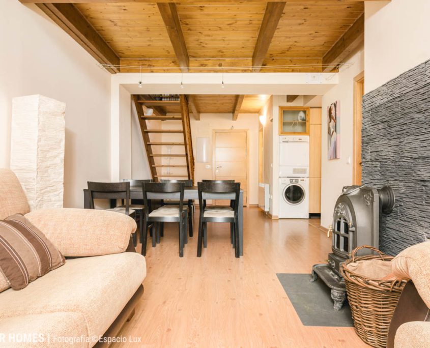 En la planta principal, un amplio vestíbulo da paso a un confortable salón-comedor con chimenea de leña, que se integra armoniosamente con una cocina completamente equipada. Esta planta se completa con un dormitorio doble con armario empotrado y un baño completo.