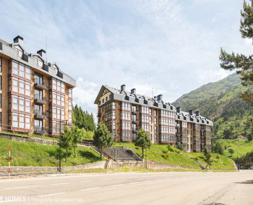 ATELIER HOMES presenta este exclusivo y luminoso dúplex en el Edificio Portal Camino de Santiago, en una ubicación privilegiada a pie de pistas en la prestigiosa Estación de Esquí de Candanchú.