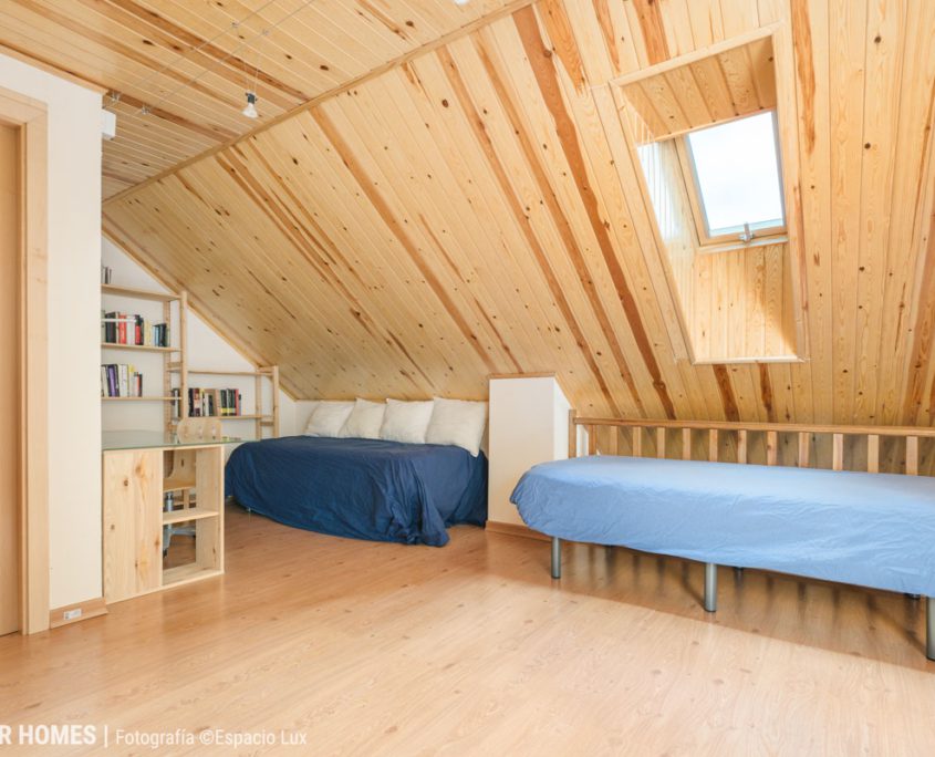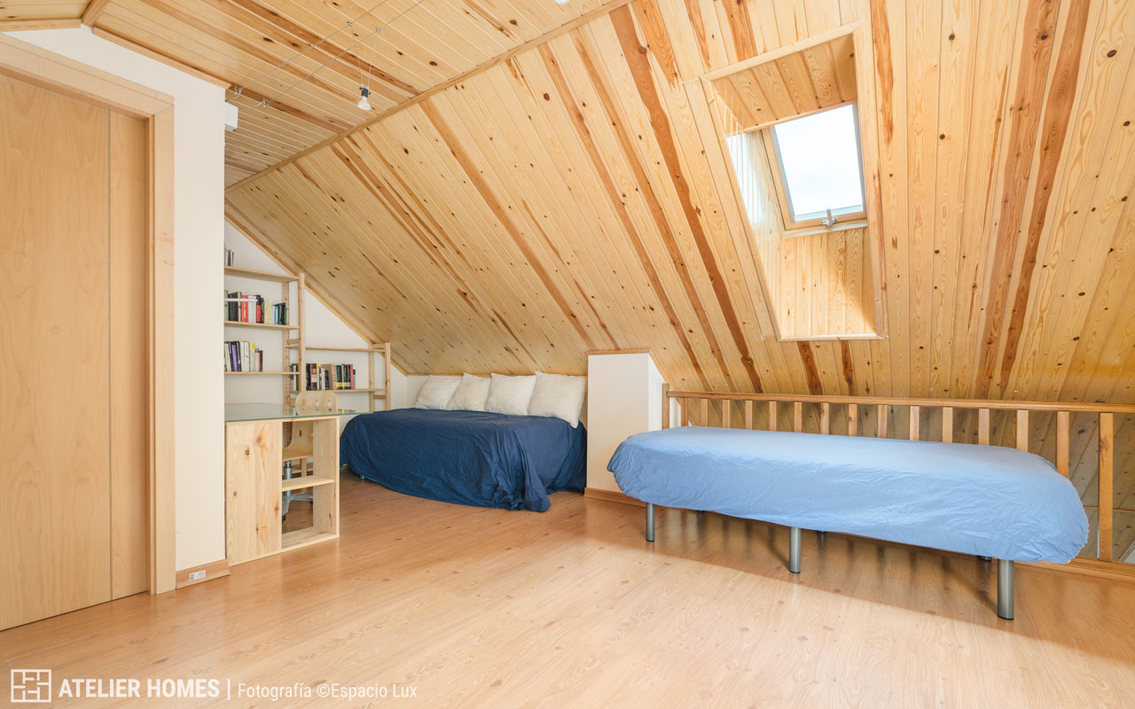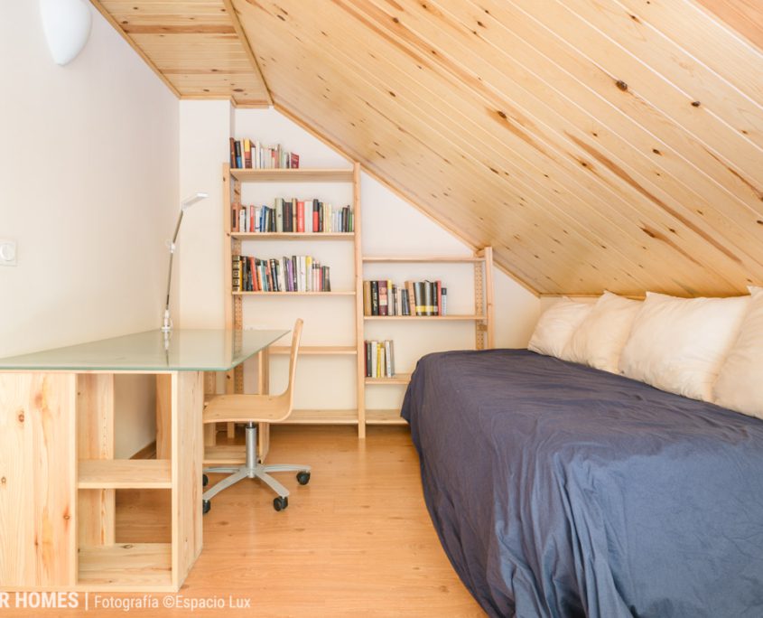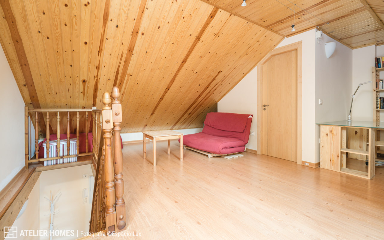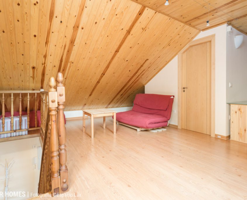 En la planta superior, a la que se accede por una práctica escalera, encontramos una gran habitación diáfana con múltiples posibilidades de distribución, ideal como dormitorio múltiple o espacio polivalente, además de un segundo baño completo.