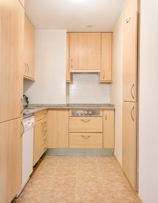 La propiedad situada en la cuarta planta del edificio disfruta de una magnífica orientación sur que garantiza luz natural durante todo el día y vistas abiertas al entorno montañoso.