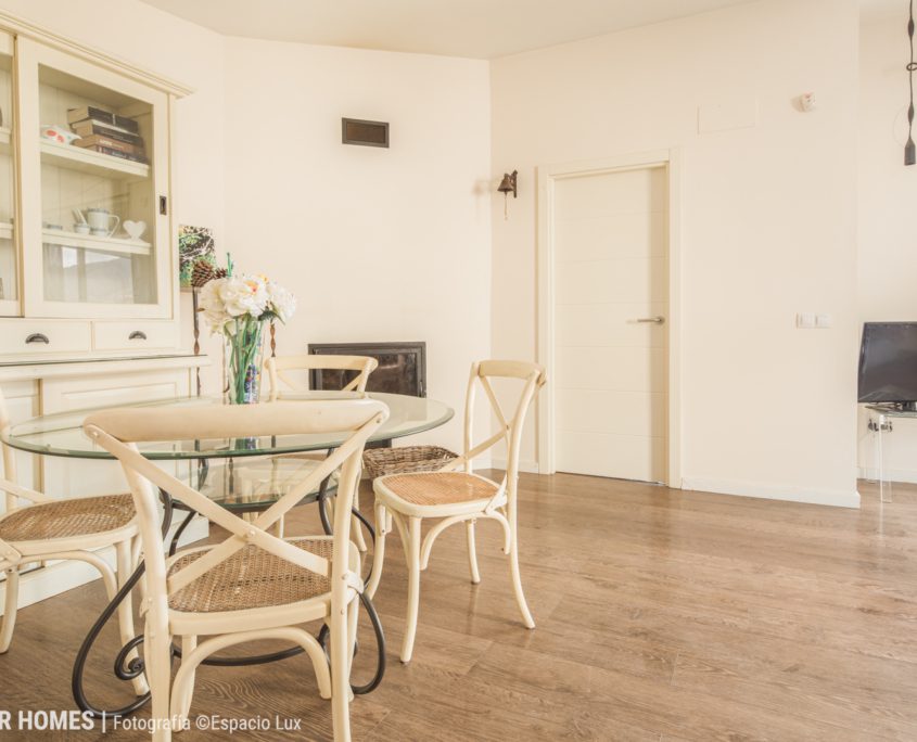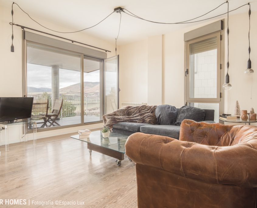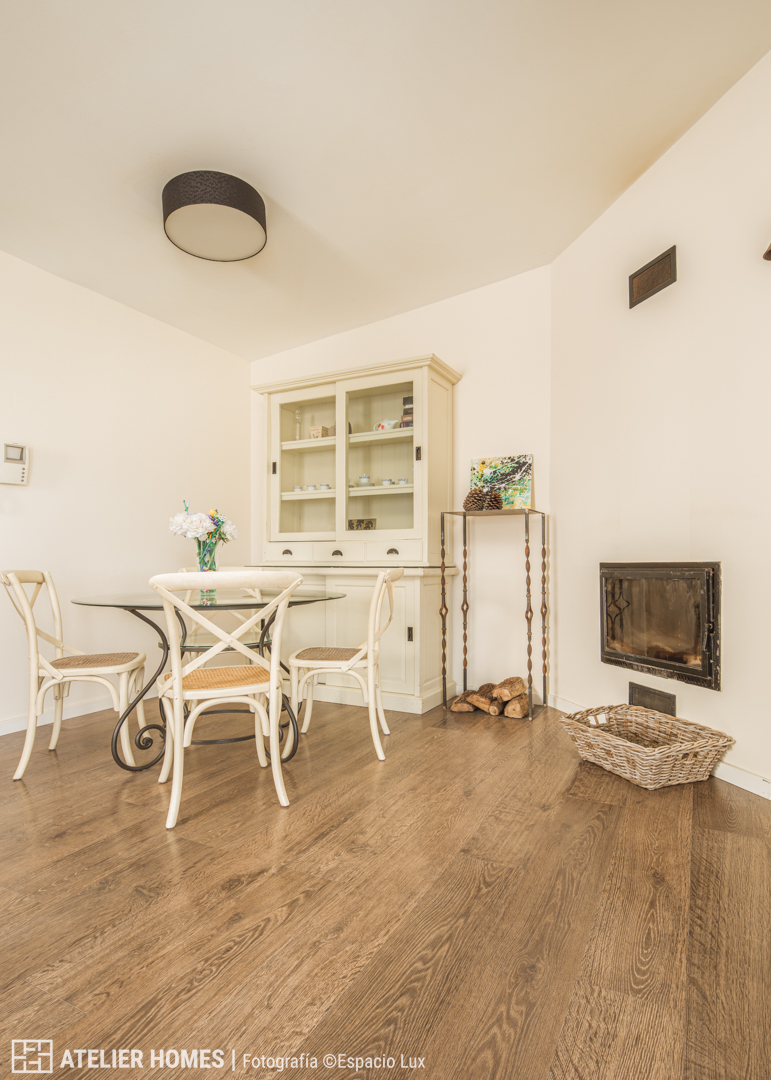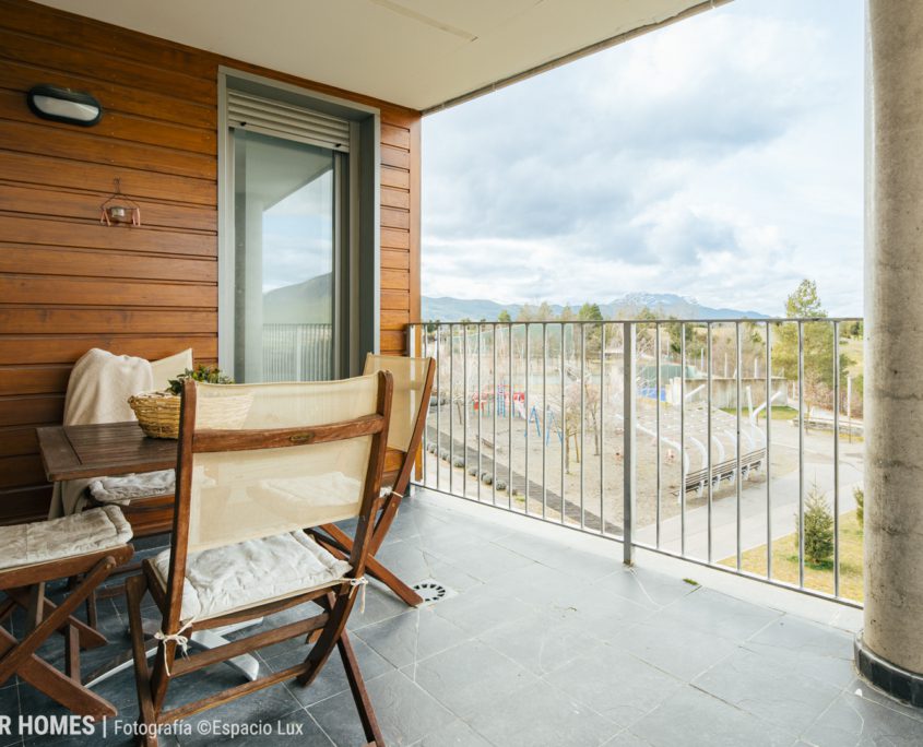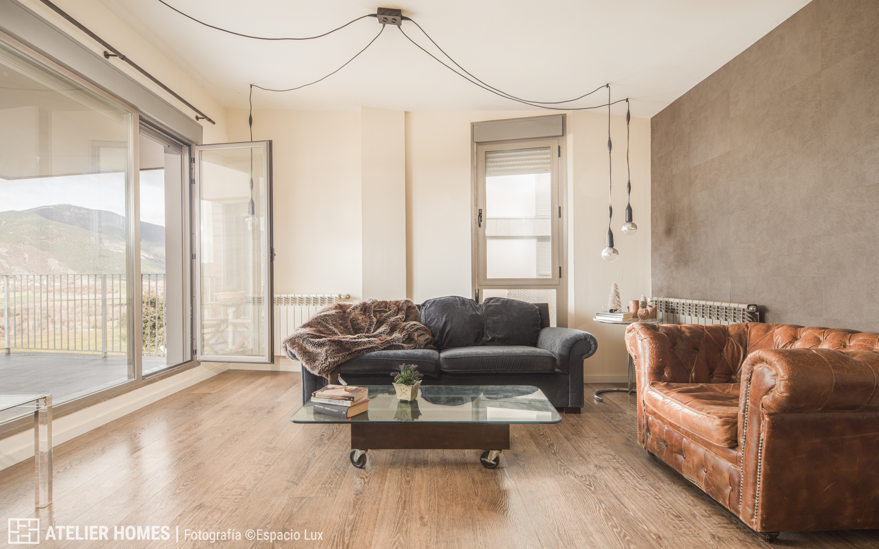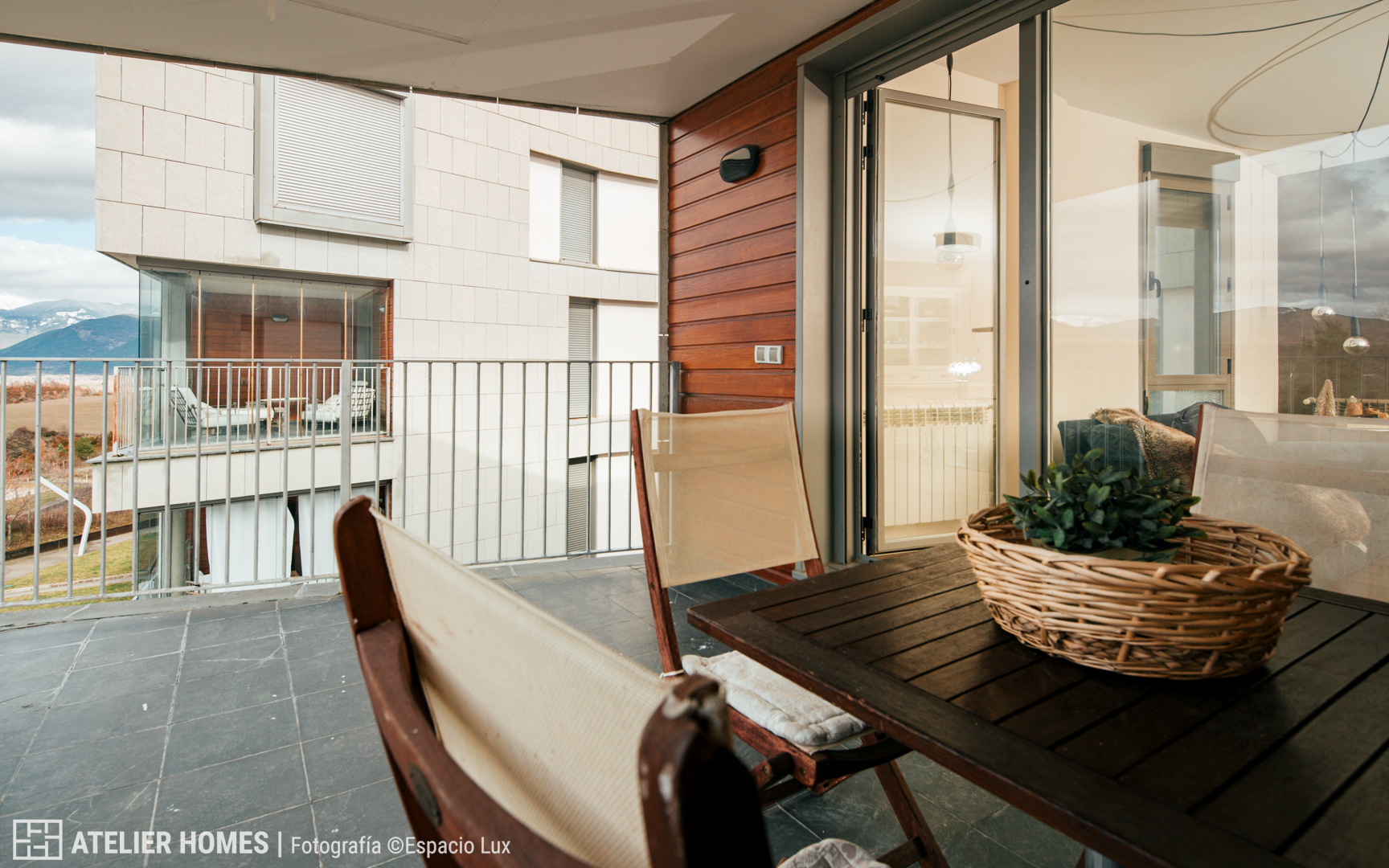 La zona de día se articula en torno a un amplio y luminoso salón-comedor con chimenea, un espacio acogedor y confortable que conecta directamente con una fantástica y amplia terraza con vistas abiertas y despejadas hacia el entorno natural y las montañas del valle. Un lugar privilegiado para disfrutar del aire libre, la tranquilidad y la amplitud del paisaje durante todo el año.