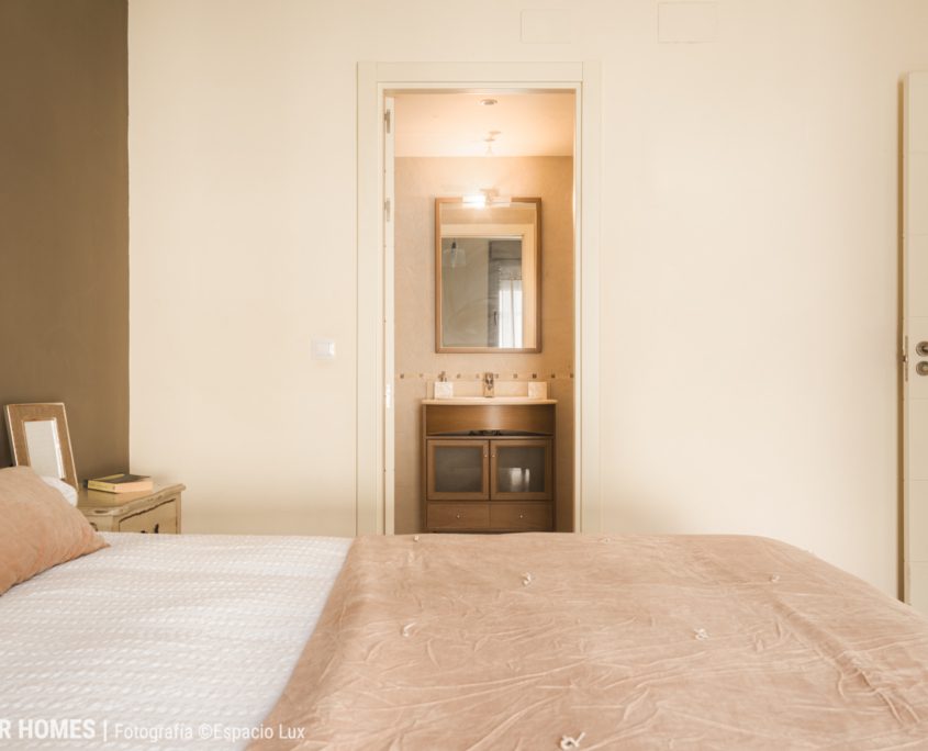 En la zona de descanso encontramos dos dormitorios dobles, ambos de buenas dimensiones y con excelente entrada de luz natural. El dormitorio principal cuenta con baño en suite, y la vivienda dispone además de un segundo baño completo, lo que aporta funcionalidad tanto para uso familiar como para invitados.